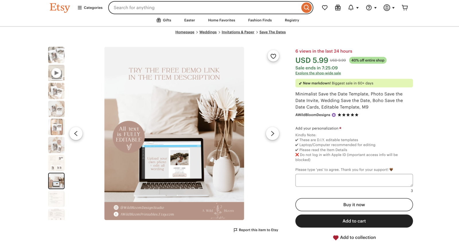 Tag your listings with relevant keywords: “baby shower invite,” “editable wedding invitation,” “digital download invitation,” etc.