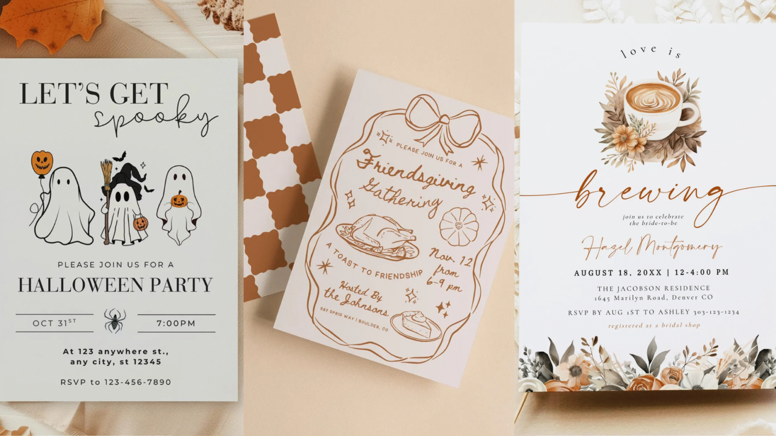 Dusty oranges, retro greens, sepia browns, and faded reds. These shine in nostalgic Halloween templates or retro-themed party invitations. - Playful Preppy Accents