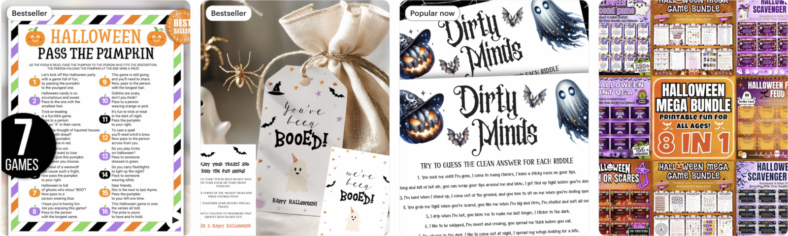These games are fun, easy to make, and perfect for bundles. Combine several into a Halloween Game Pack to attract party planners and parents looking for last-minute entertainment.